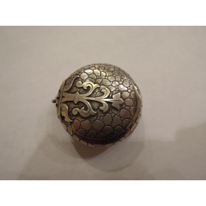 This small powder compact presents a very pretty guillochage looking like sharkskin. Can be hang as a pendant.