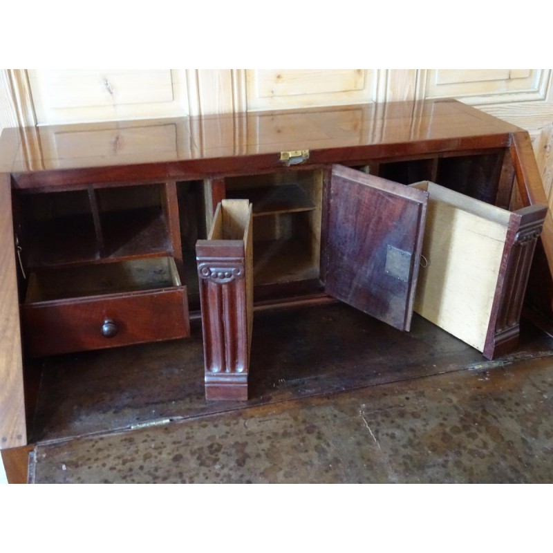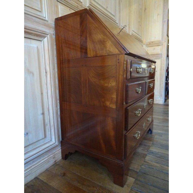 Scriban desk made in St Malo, solid mahogany. It opens with a flap and five drawers. The sides and back are mounted to panels. Harbour work, 18th century.