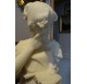 Très belle sculpture, de grande taille, en marbre blanc représentant une jeune fille lisant une lettre qu'elle tient dans la main gauche, tandis que sa main droite est posée sur son visage.